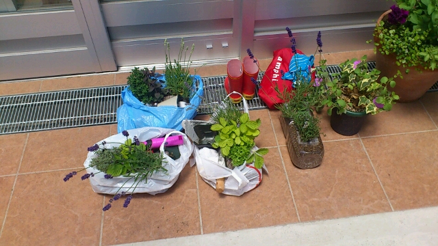 そこにワイルドストロベリー、タイム、ラベンダーなどのハーブを植え込みます。