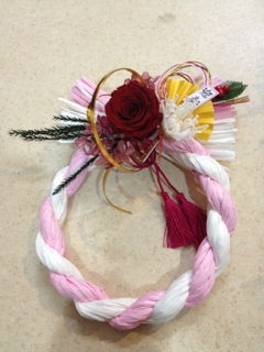 今年は、プリザーブドフラワーを使ったおしゃれなしめ飾りを販売しています。